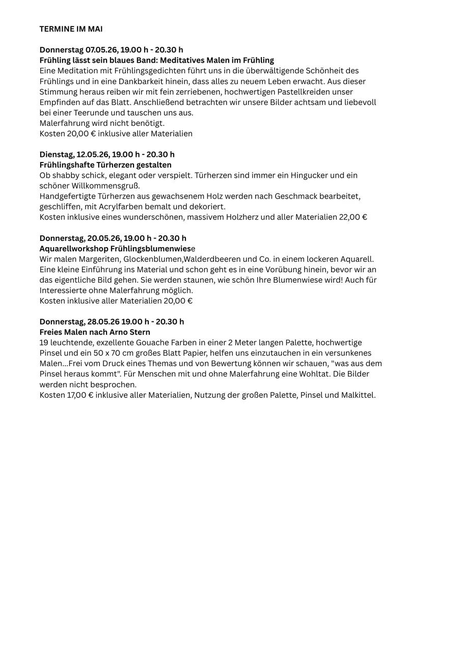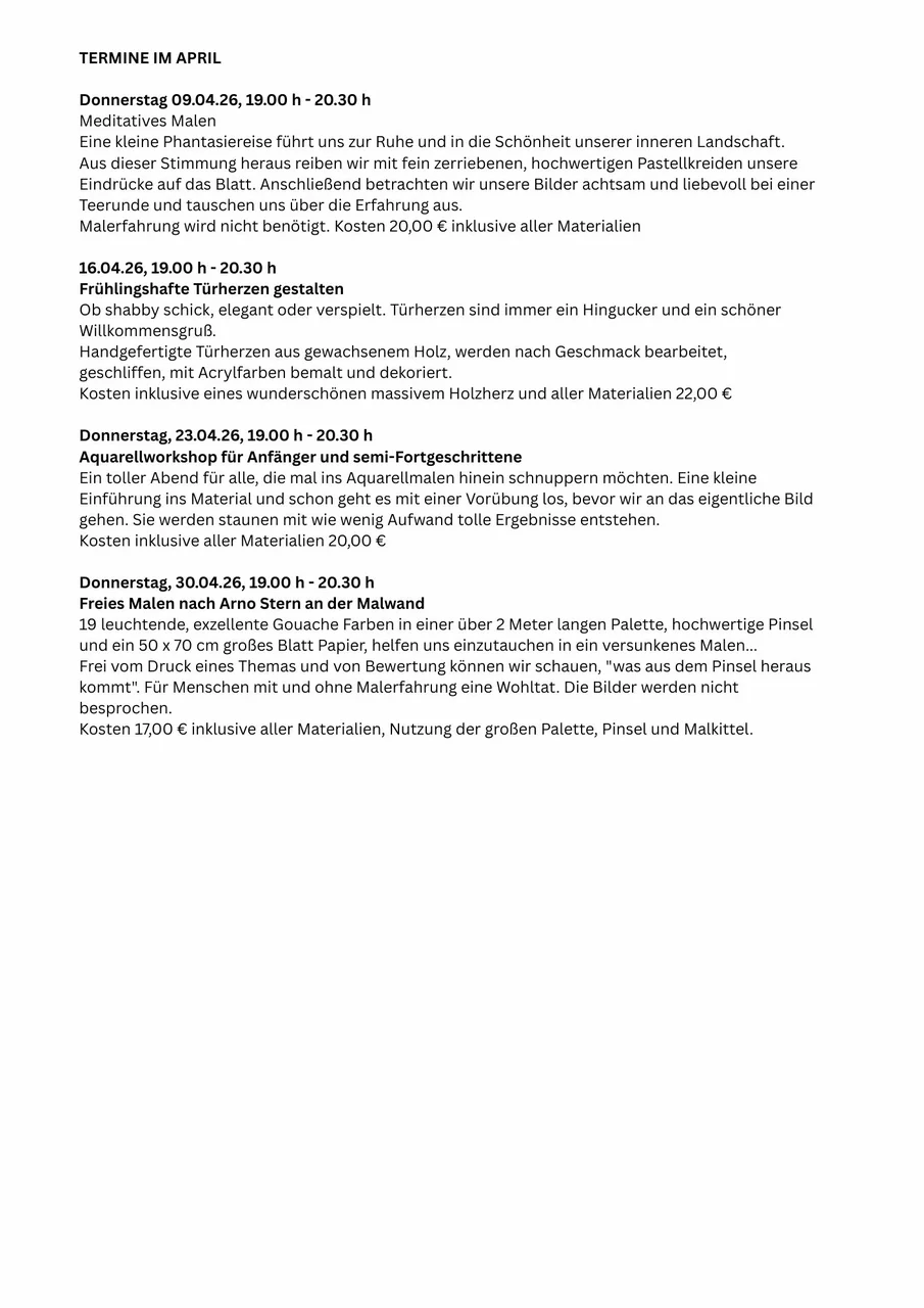 Die nächsten Termine: 07.03., 21.03., 11.04., 25.04., 09.05.,